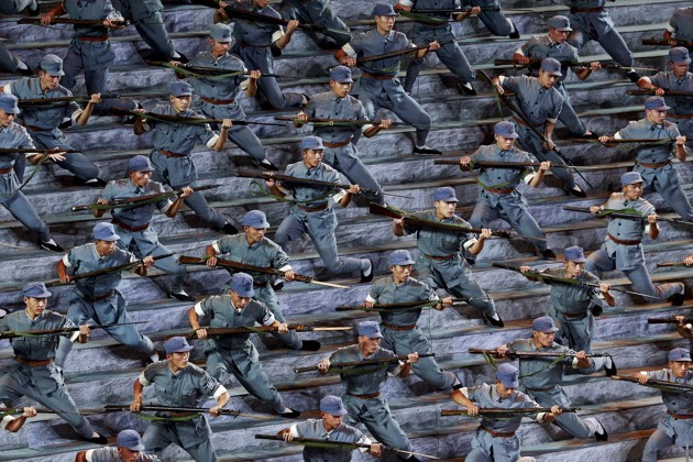 Actors dressed as Red Army soldiers mark the 70th anniversary of the end of World War II, in Beijing. (Kim Kyung-Hoon / Reuters)