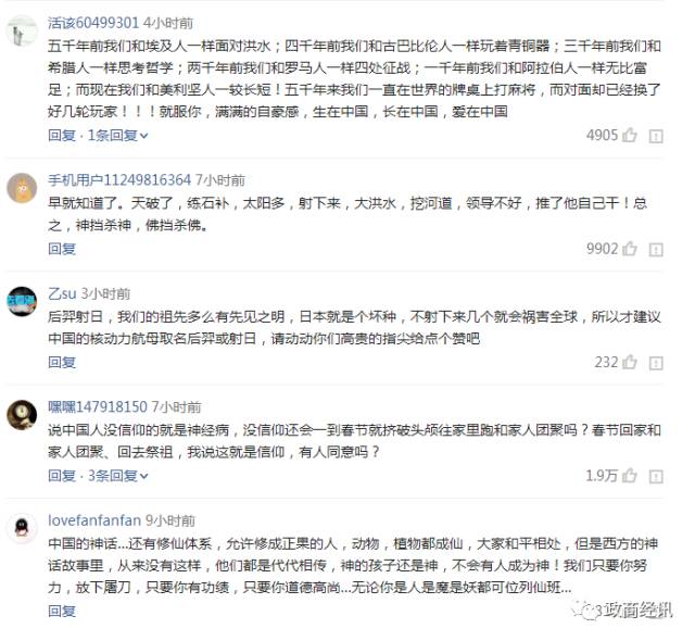 我们从小听到大,并口口相传给下一代的这些神话故事,体现的绝不仅是故事那么简单。每个文明在初期都是有神论,但唯独我们的文明不畏惧神,也许正因为我们深刻理解老子的那句话,所以我们的祖先从不把生存的希望寄托于神的眷顾,也因此,很多人说中国人没有信仰。呵呵,没信仰的民族能存续5000年吗?