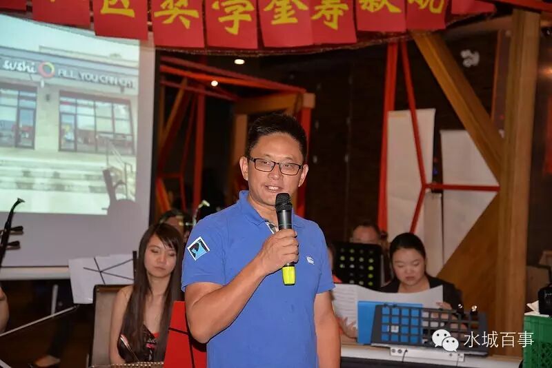 晚宴在Ye's Sushi餐馆举办。 首先由由滑铁卢华人商会的副会长刘志中满怀激情地介绍了滑铁卢华人社区奖学金的渊源和历史。滑铁卢举华人社区奖学金在2012年由水城网首先发起,邀请当地的成功华人商业人士捐资赞助。每年有六位品学兼优的华人高中毕业生获得此项奖学金。
