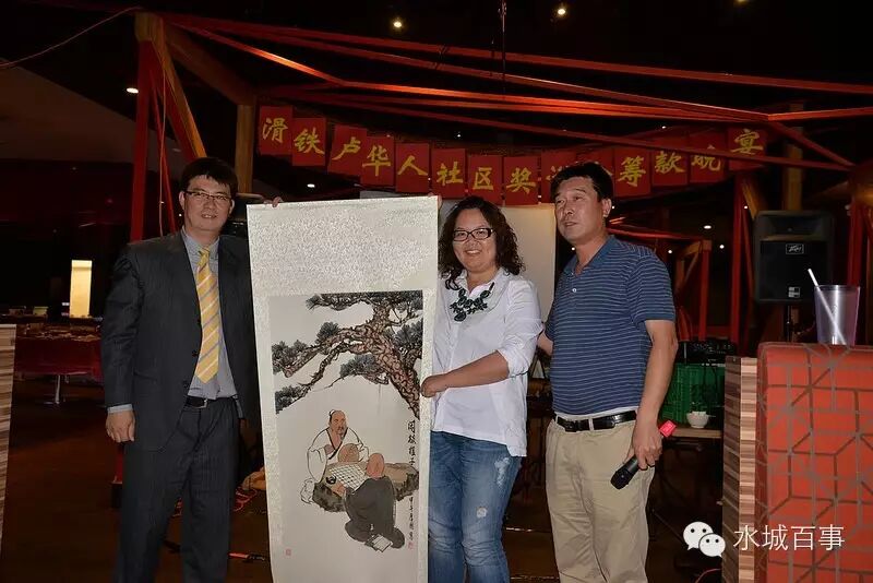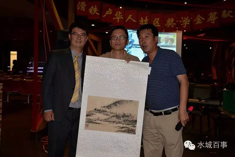 晚会在名家艺术品拍卖中达到了高潮。拍卖作品都是由社区华人捐赠的艺术品和收藏品。滑铁卢孔子学院对本次晚宴提供了大力支持,捐赠了三幅中国名家字画以供拍卖。孔子学院的刁老师给大家详细介绍了中国的三位画家,并且点评捐赠的三幅作品。大家在欣赏着中国文化艺术品的同时,也积极举手竞拍。经过起伏跌宕,扣人心弦的竞价, 晚会的拍卖活动共筹款2970加元。