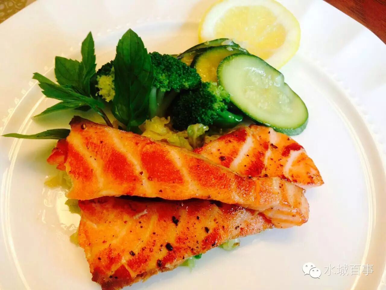 花花的作品,实际是日系料理风格,讲究生食,她烤制的那盘三文鱼火候恰到好处;那盘生鱼鲜嫩,给人入口即化的感觉。两盘均配薄荷和lemon,有提味去腥的效果,另外一盘多配了黄瓜和西兰花,有非常爽口的感觉。总之摆盘上做到了简洁大方,颜色搭配协调,以我个人的风格,崇尚简洁就是美,我喜欢这样的作品。另外,从健康的角度来看,这是一个非常不错的营养组合,少油,少盐(应该是吧!)