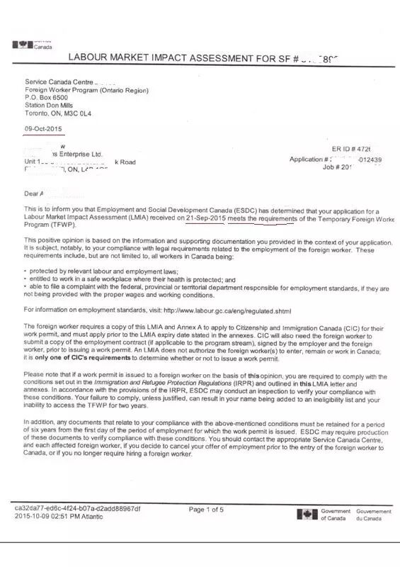 申请加拿大HRSDC的劳工市场意见(LMIA)时需要提供雇主信息,被雇佣的外国工人信息,详细的job offer信息。