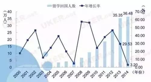 去年回国的留学生有36.48万人占大陆出国留学生总数的62%
